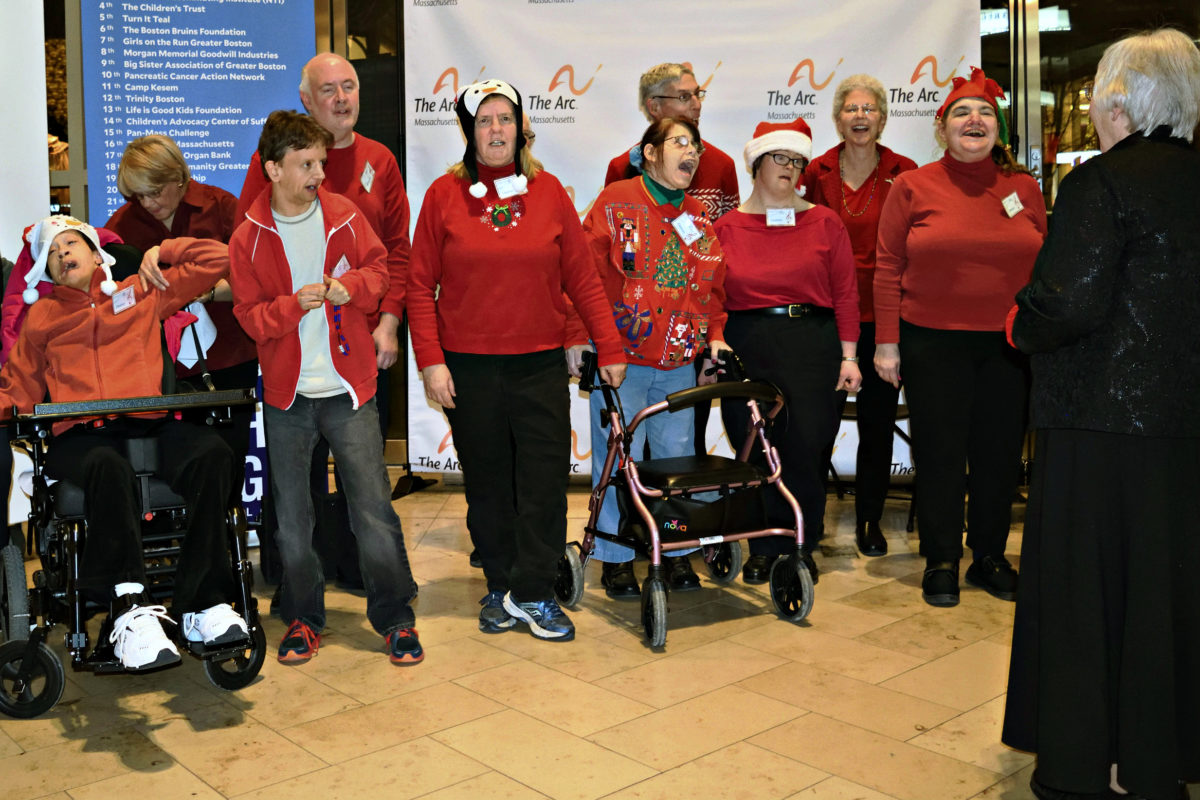 Each December, the Prudential Tower blazes nightly to help community organizations gain visibility during the holiday and this year the building was the color orange for Arc organizations across the state. Minute Man Arc led the festivities with a chorus of individuals who enjoy singing all year long. A key element of the Recreation & Family Services Program, the chorus is emblematic of Minute Man Arc programming that is interactive, inclusive and therapeutic.